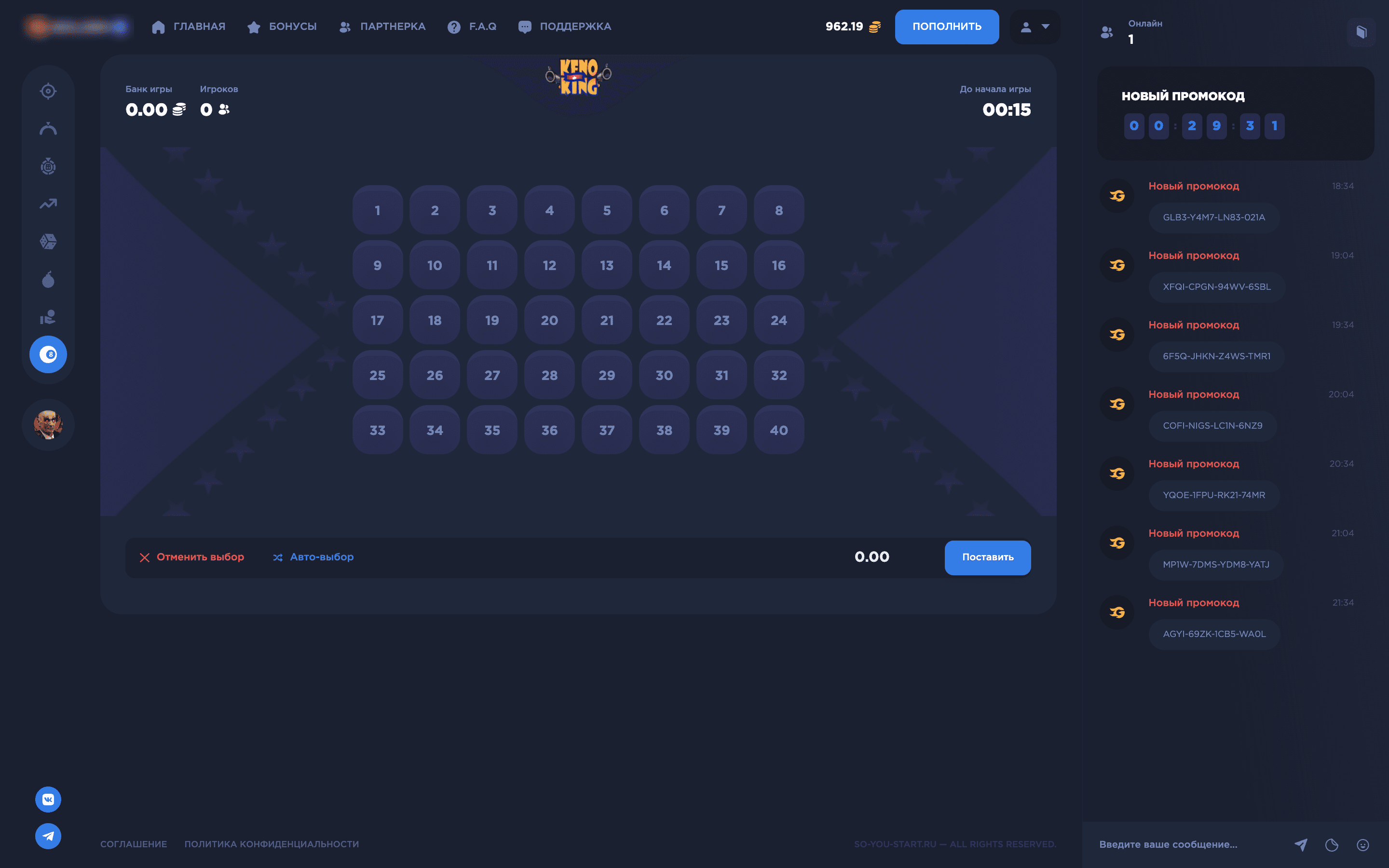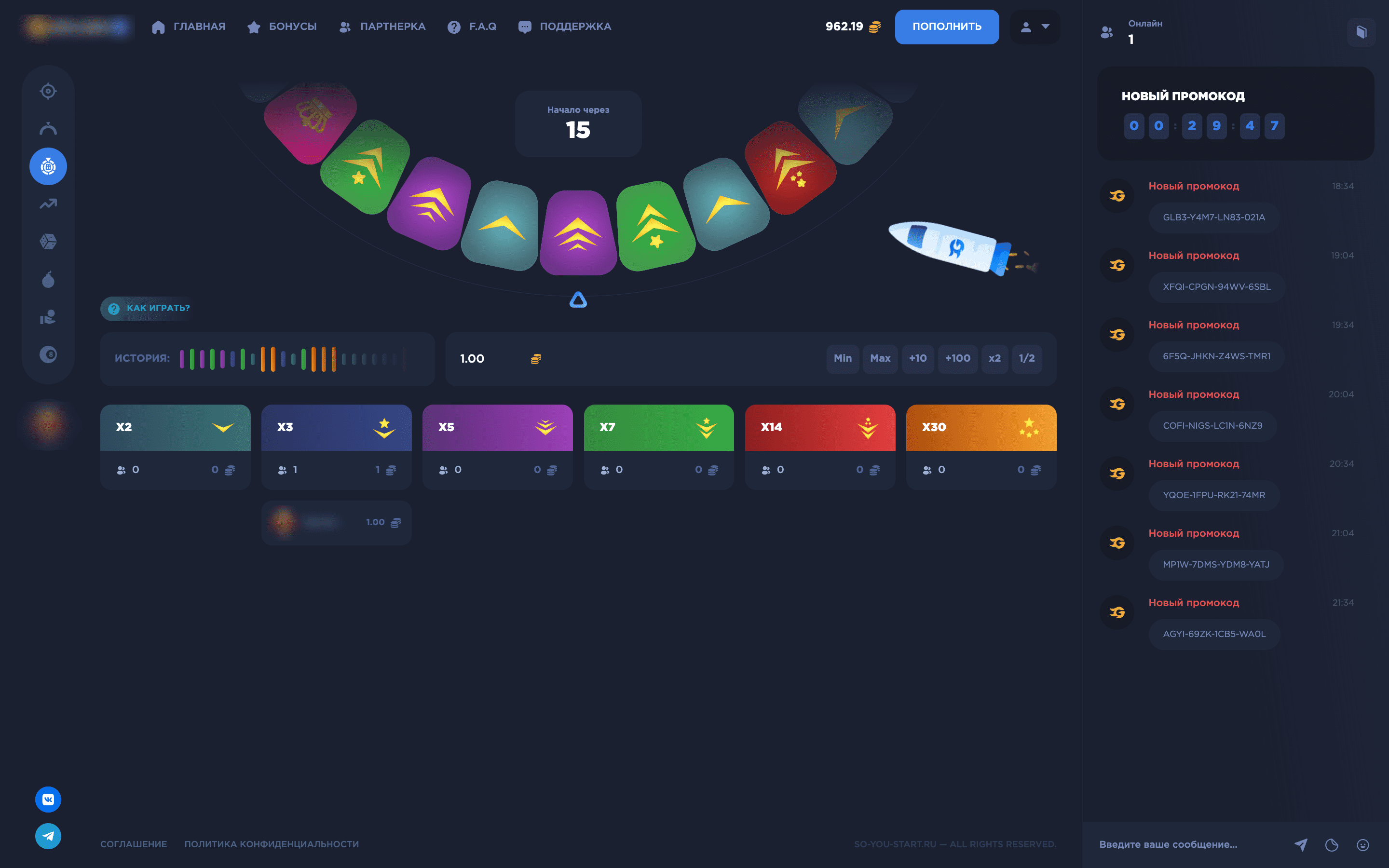 Адаптивный дизайн, 9 режимов игры: Crazy Shoot(Новинка! Вы стреляете по игровым карточкам, анимация присутствует), Dice, Mines, Slots, X100, X30, CoinFlip, Crash, Keno (онлайн режим). Умный телеграм бот. Будет оповещать игроков о бане домена, проблемах сайта, новых промокодах в вашем канале самостоятельно и статусе выводов. Бонусы за подписки в группы, каналы, за репосты и привязку к тг. Реферальная система. Больше 6 платежных систем с 50+ методами, включая крипту.